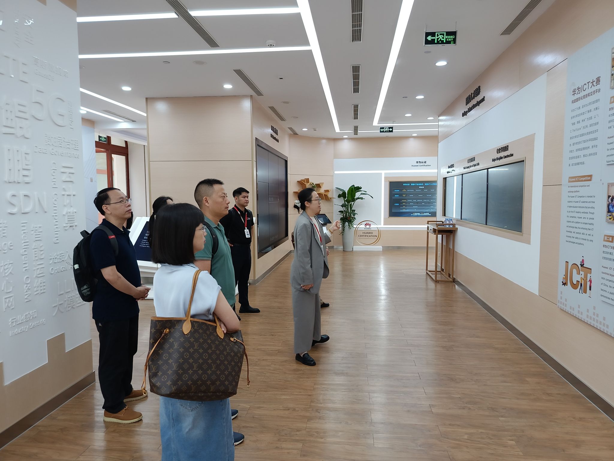 应华为邀请,9月1日,信息学院与智慧交通工程学院一行共同前往华为(杭州)全球培训中心,研讨ict数智人才培养方式,并调研华为教育行业的软硬件产品。在杭州华为全球培训中心,学院一行参观了华为ict技术技能人才培养展厅,随后与华为讲师举行集中会议,就ict人才培养展开研讨。此外,还与华为讲师一同观摩并体验了ai软硬件设备、鸿蒙物联网/移动应用开发软硬件设备、5g移动通讯虚拟软件系统、计算机网络虚拟软件系统等教育产品。