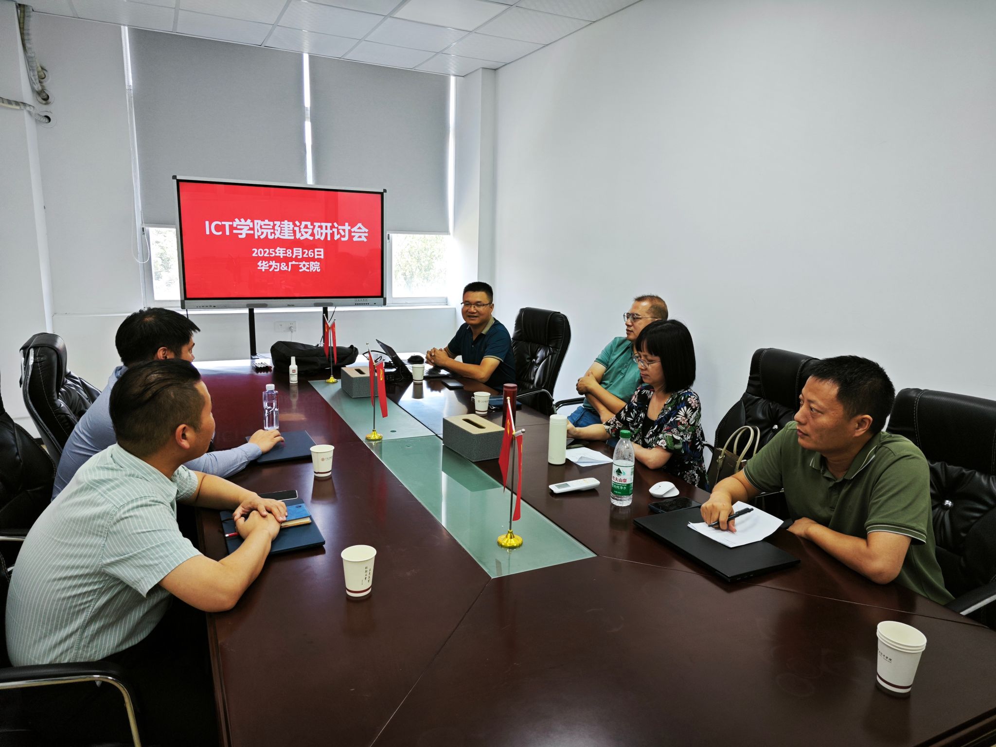 为积极响应“大力推进现代化产业体系建设,加快发展新质生产力”的国家战略部署,充分深化“数字 ”“人工智能 ”和“交通 ”的赋能作用,着力打造开放型、融合型、交叉型和综合型的新式现代化产业学院示范中心,近日,信息学院特邀请华为广州政企教育行业部蔡志超经理及企业培训与认证部魏政经理莅临学院科技产教园区,共同研讨ict数智产业学院的建设内涵。信息学院副院长许兴鹍、人工智能技术应用专业带头人赖小平、网络媒体系主任莫乐群、工业软件开发技术专业负责人张凯与企业来宾进行了深入交流,交流内容主要涵盖华为算力服务器与教育行业产品、ict 生态企业产教融合模式以及华为与兄弟院校校企合作成效等方面。
