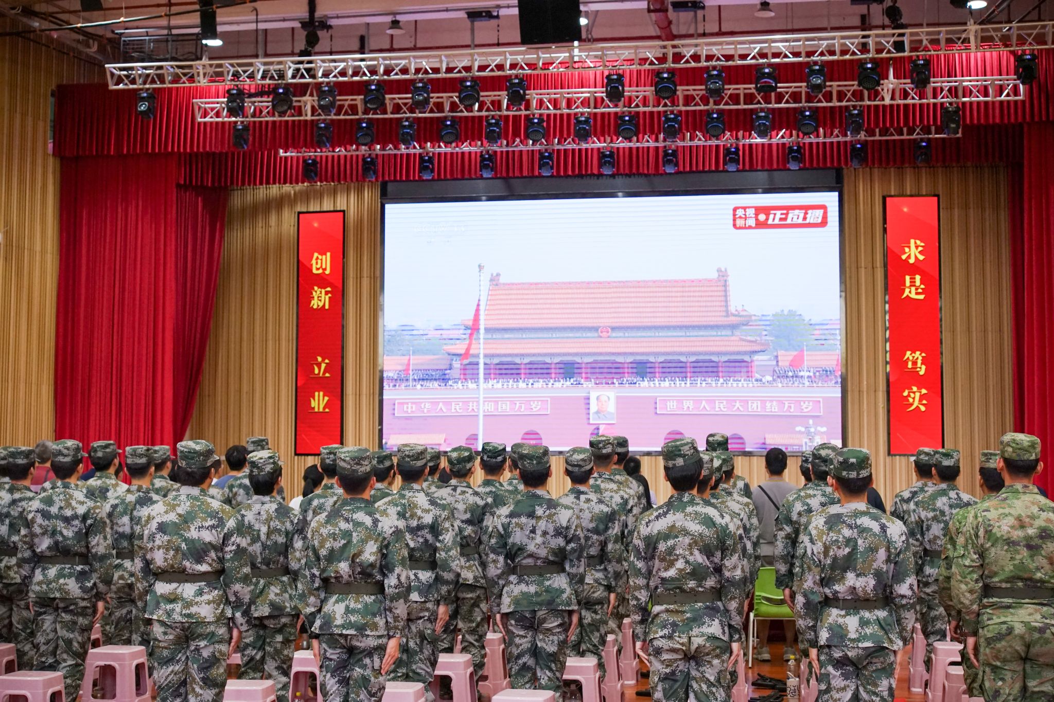 学院2025年学生教官(优秀退役学生)专项训练营近期开展,学院组织他们集体收看九三阅兵直播。铁流滚滚,是党对人民军队的绝对领导;青春方阵,是强国一代的铿锵回答。学生教官把操场当战场,此刻更懂得“请党放心、强国有我”的血脉传承。学院团委书记、党委学生工作部主要负责同志王铿崎表示,将把“阅兵精神”融入军训课堂,把忠诚与血性种进青年心底,让每一次稍息立正都向英雄标齐,让每一滴汗水都折射信仰之光,引导同学们把爱国情、强军志转化为刻苦学习、担当奉献的实际行动,在强国建设、民族复兴的新征程上书写无愧于时代的青春篇章。