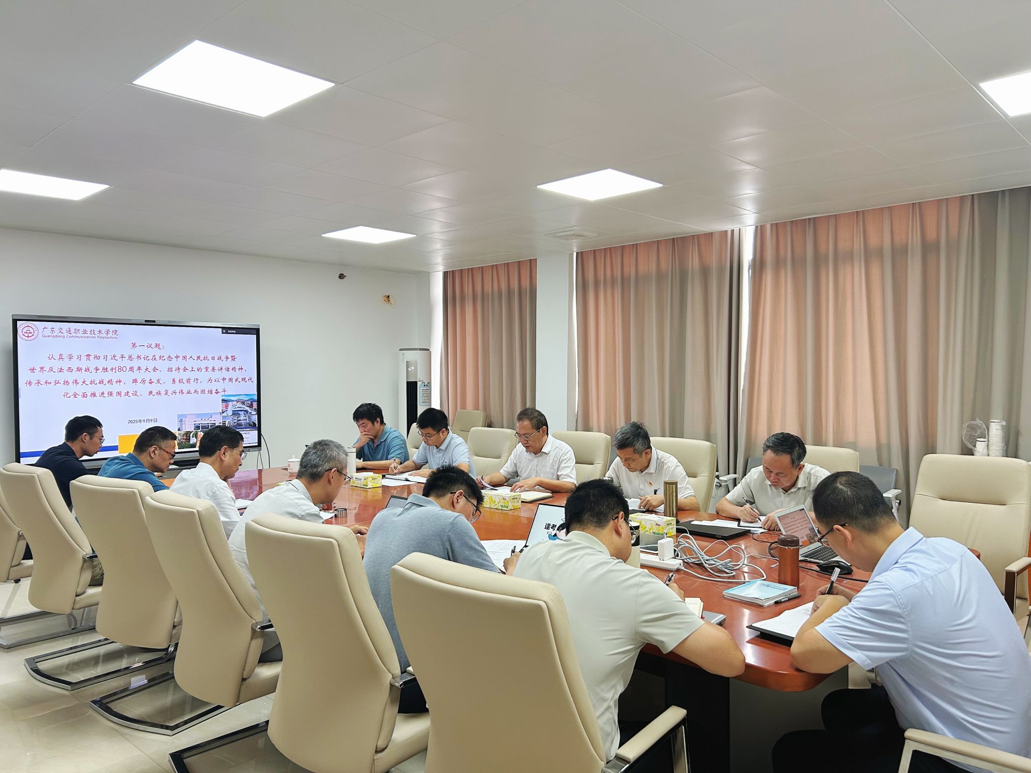 9月9日,学院党委专题学习习近平总书记在纪念中国人民抗日战争暨世界反法西斯战争胜利80周年大会、招待会上的重要讲话精神,学习习近平总书记在中共中央政治局第二十一次集体学习时的重要讲话精神和习近平总书记就作风建设作出的重要指示精神。学院党委副书记、院长罗毅主持会议并提出贯彻落实意见,党委副书记、纪委书记蔡艺结合工作实际发言。党委班子成员出席会议。