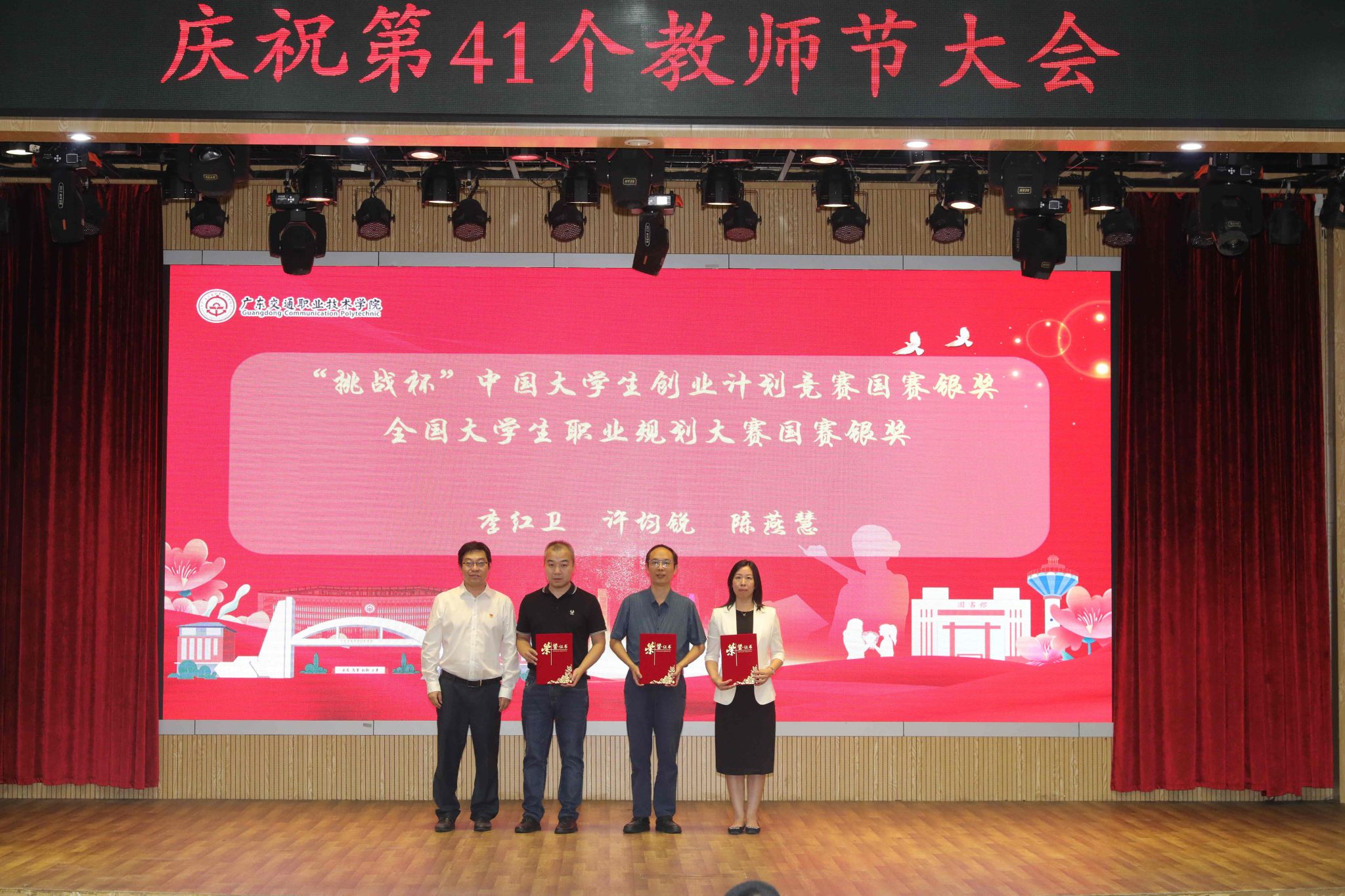 9月10日下午,学院在天河校区设主会场,清远校区、花都校区设立分会场同步举行第41个教师节庆祝表彰大会。本次大会以“以教育家精神铸魂强师,谱写教育强国建设华章”为主题,全体教职工齐聚一堂,共庆节日、表彰先进、展望未来。学院党委副书记、院长罗毅,党委副书记、纪委书记蔡艺,党委副书记廖金宝,副院长王劲松、邱文祥出席大会,大会由王劲松主持。