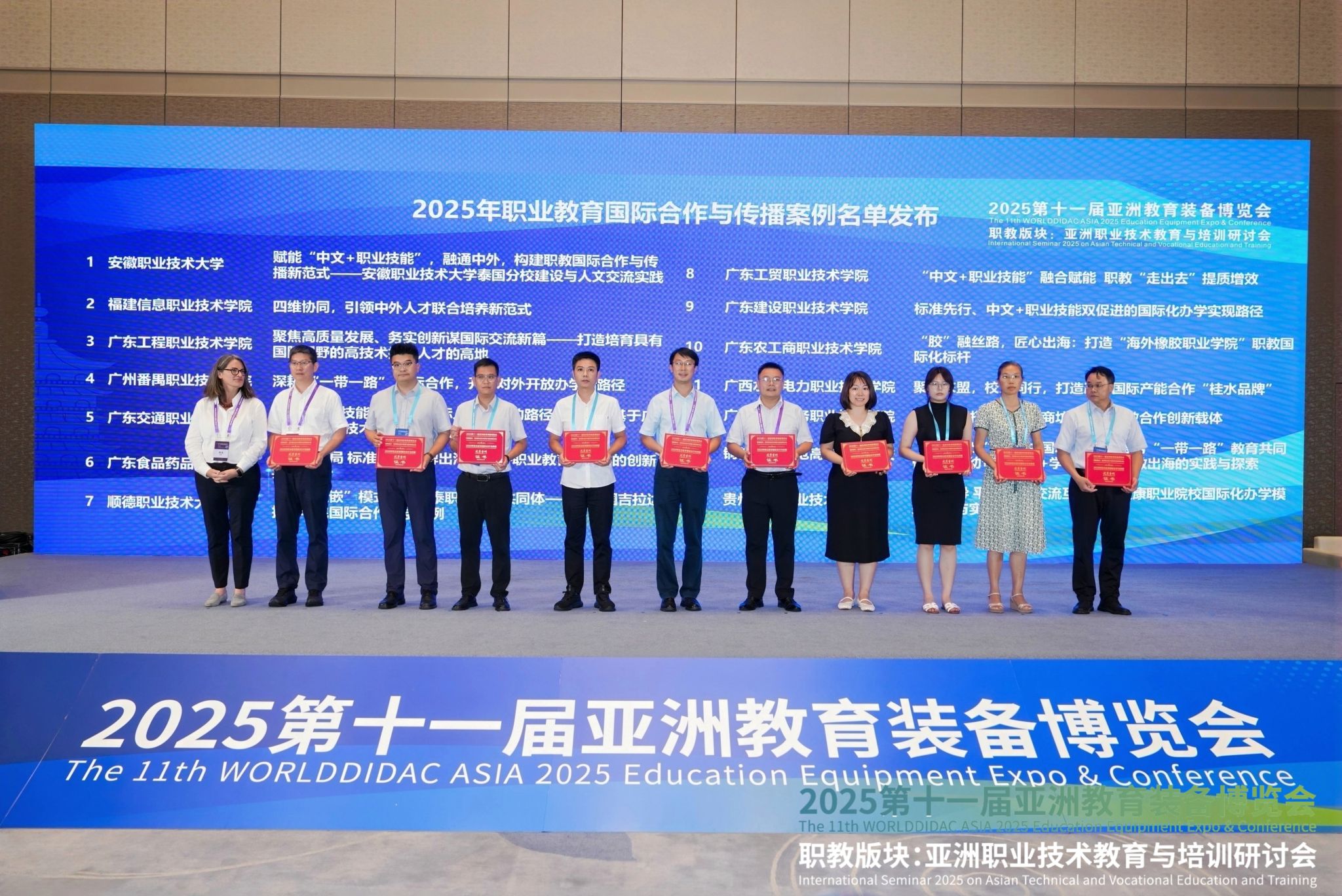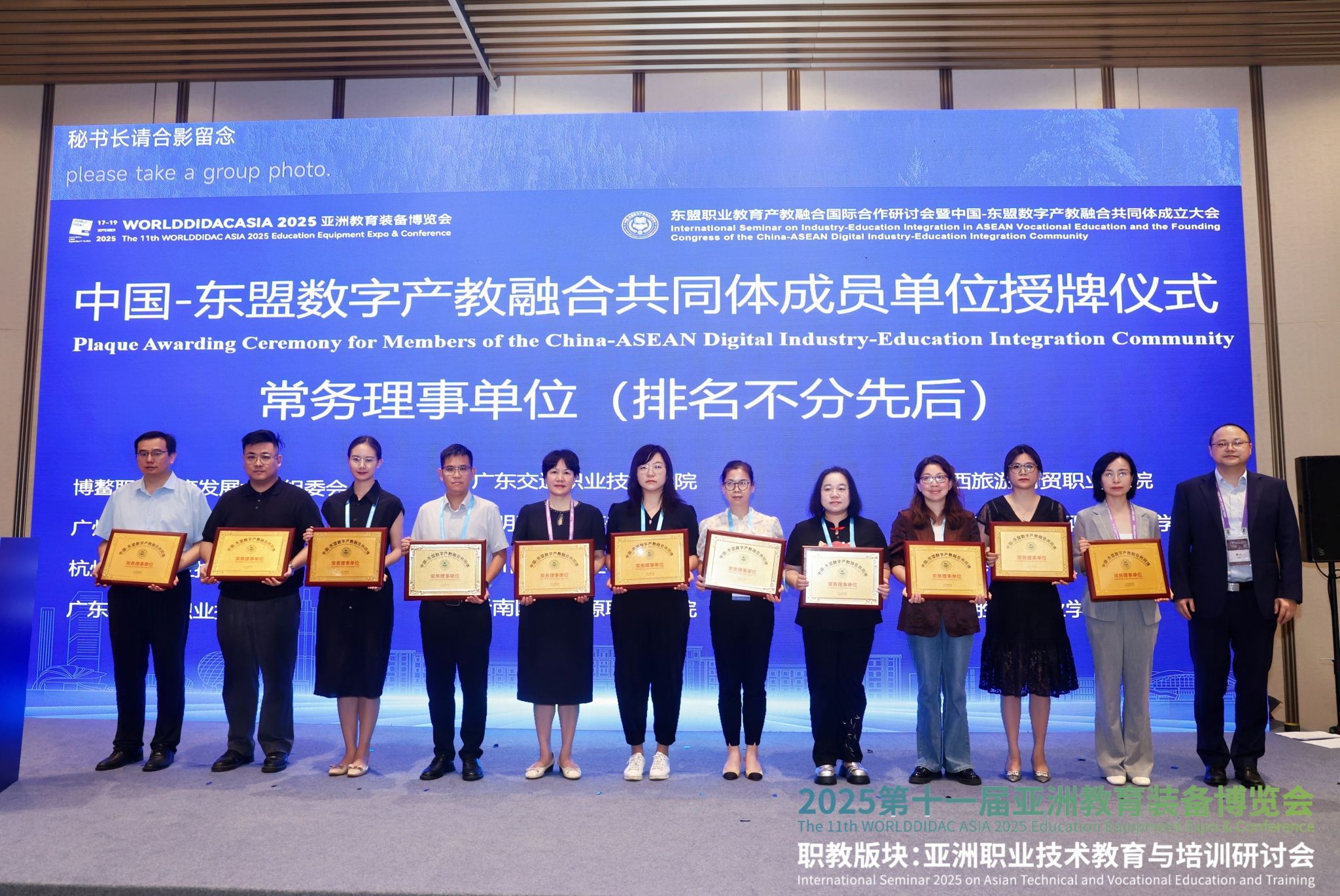 此外,学院在大会“2025年职业教育国际合作与传播优秀案例”评选中表现突出,荣获优秀组织奖和优秀案例奖、东盟数字产教融合共同体成员单位,彰显了学院在职业教育国际化与产教融合方面的卓越成效。