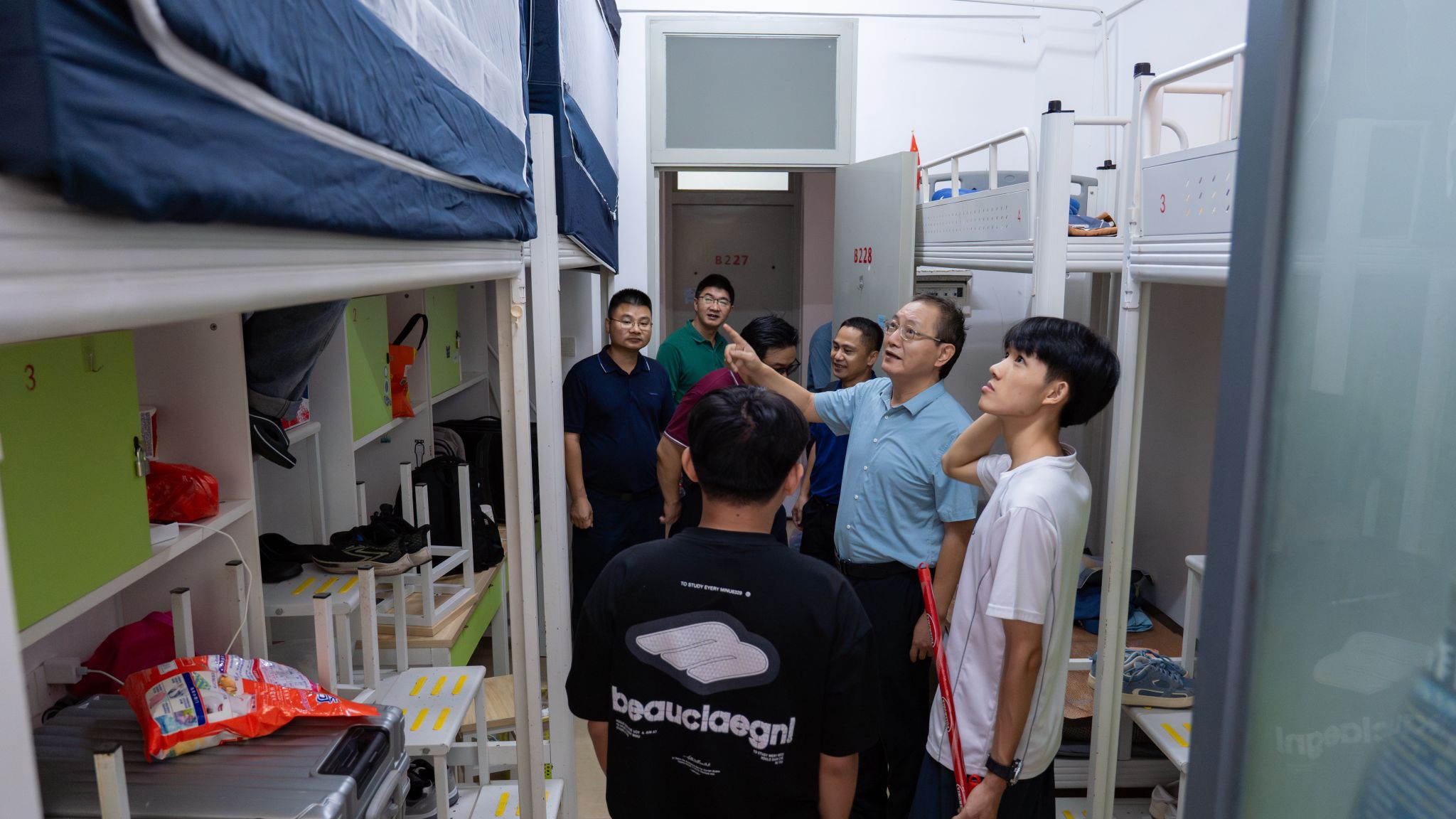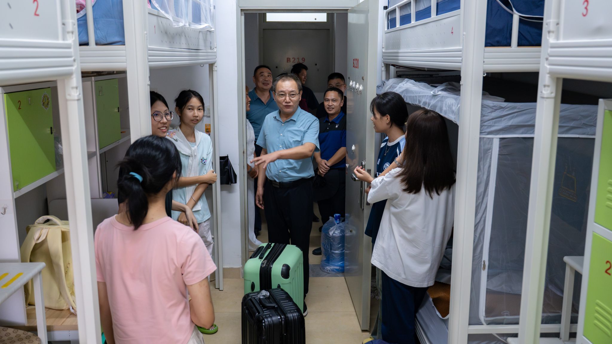 “老家是哪里的?”“饮食是否习惯?”“有没有什么困难?”每走进一间宿舍,院长罗毅都要与同学们亲切交流。他耐心细致询问新生们到校后的生活体验,认真倾听大家初入校园的感受和需求,提醒同学们要做好“两热”的预防,更殷切叮嘱同学们珍惜大学时光,做好学业规划,锤炼专业能力、修炼意志品格,努力成长为有理想、敢担当、能吃苦、肯奋斗的新时代好青年。